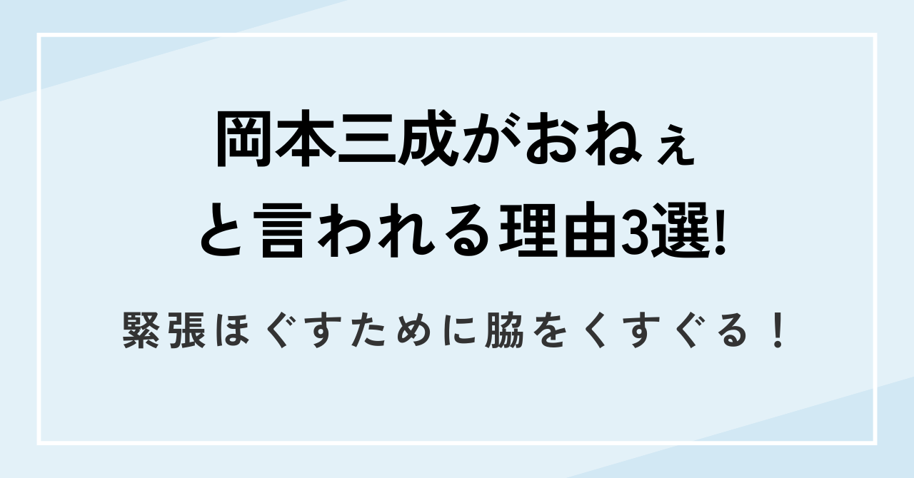 この記事では、岡本三成さんがおねぇと言われる理由と、実際におねぇなのか、その疑惑について解説します。