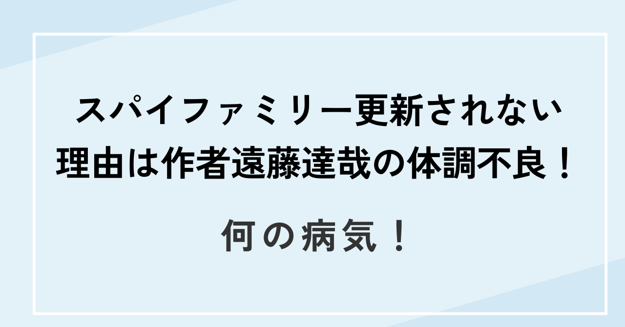 スパイファミリーの更新がストップしている理由は遠藤先生の体調不良のようです。