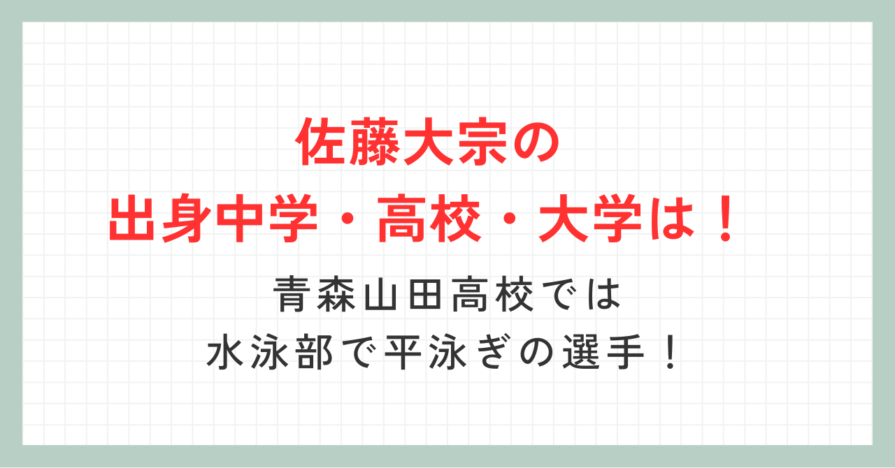 佐藤大宗は青森山田高校では水泳部で平泳ぎの選手!