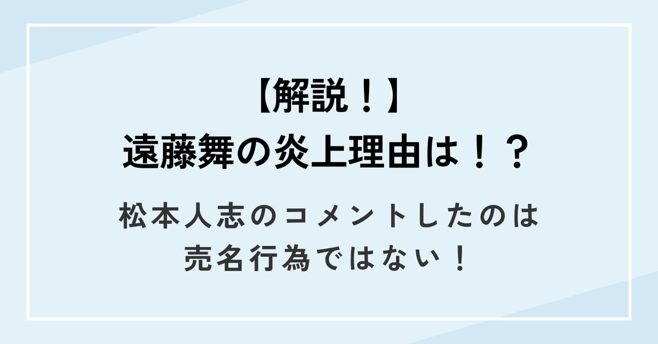 この記事では、そんな松本人志さんについて言及した遠藤舞さんが、炎上してしまっている理由についてを中心に紹介しています。