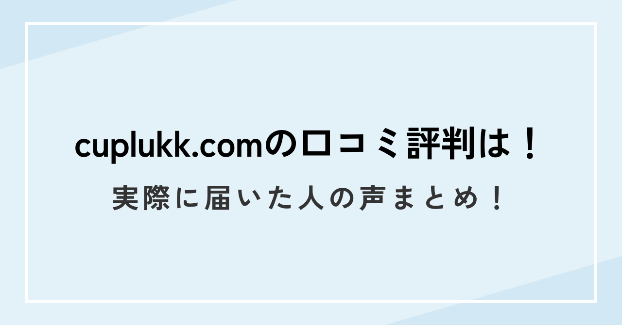 本記事では、cuplukk.comに関する評判や実際に商品を購入した方々の体験談をもとに、その信頼性について詳しく検証していきます。cuplukk.comの利用を検討している方は、ぜひ参考にしてください。