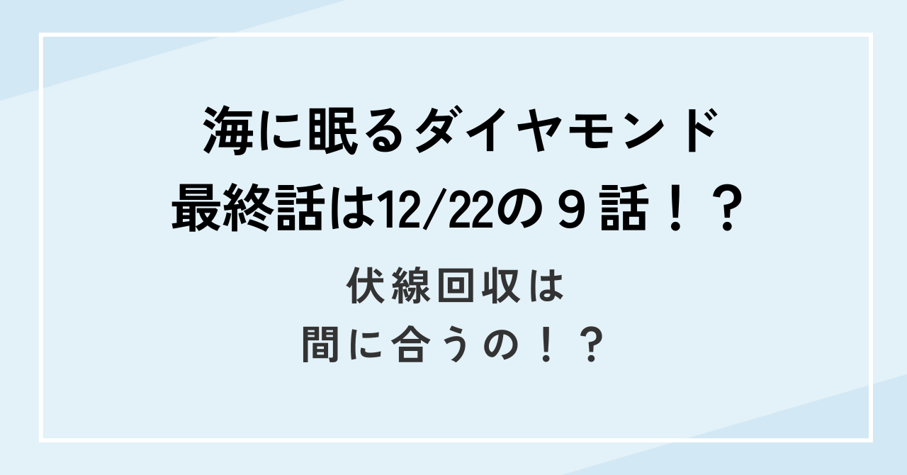 毎週日曜日に放送されている『海に眠るダイヤモンド』は、12月8日に7話の放送が終了しており、2週間後の12月22日が最後の放送となるため、9話で完結する模様です。