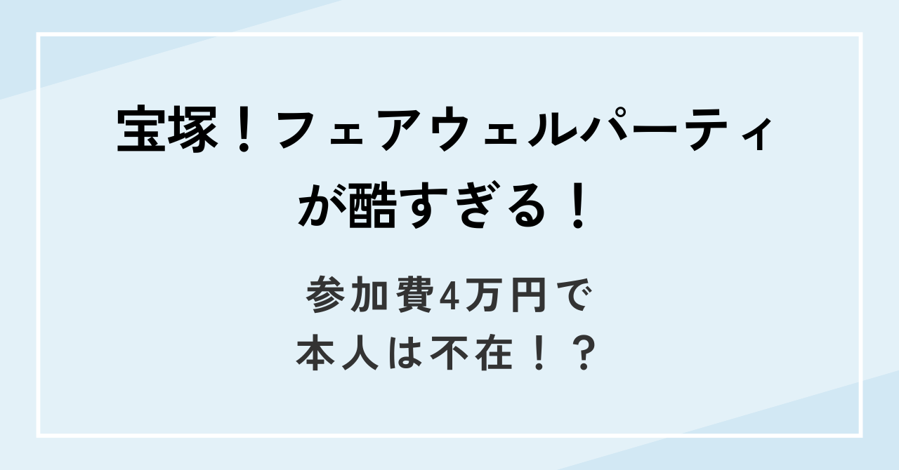 宝塚歌劇団に普段あまり馴染みのない方を中心に、今回のフェアウェルパーティの参加費4万円は酷すぎるという声が多く上がっているようです。