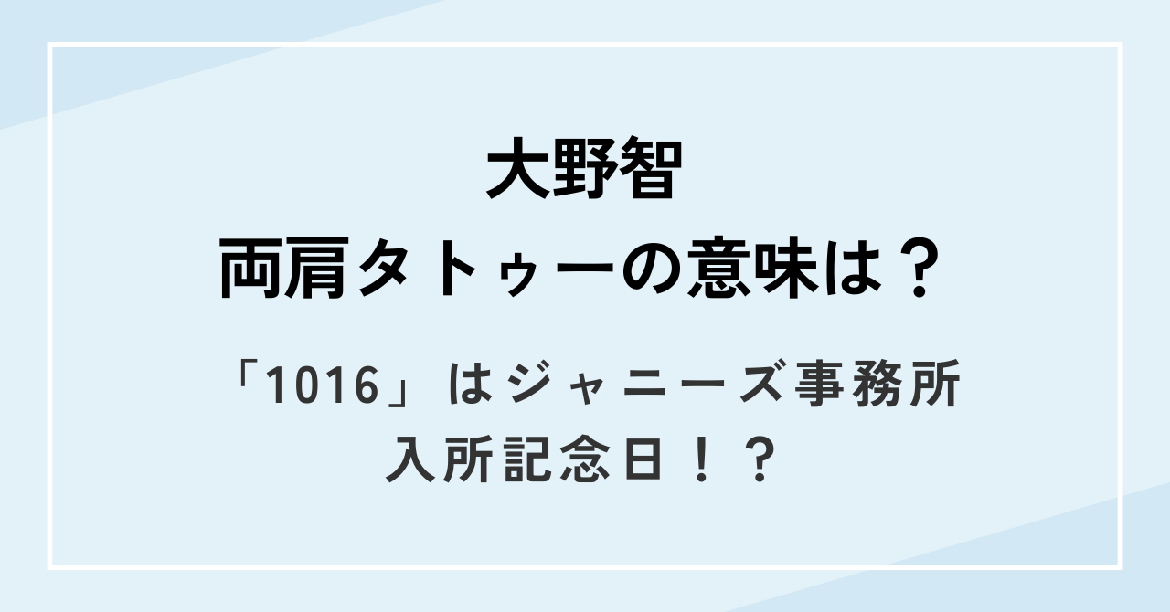 大野智さんのタトゥーには、『1016』という旧ジャニーズ事務所に入社した日が刻まれていました。