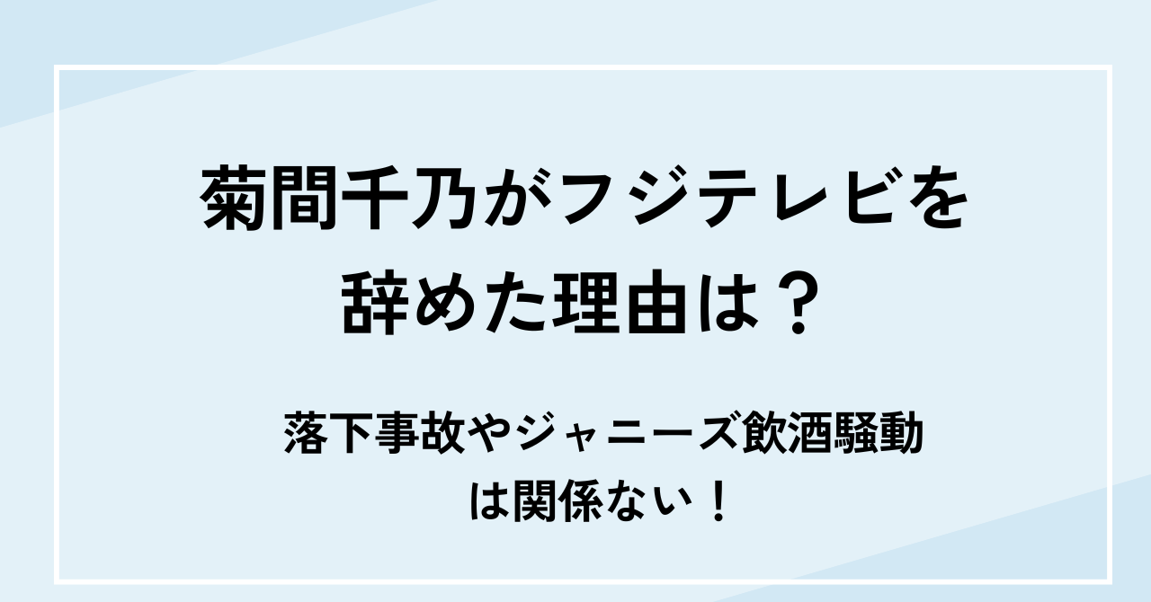 菊間千乃さんといえば、フジテレビアナウンサー時代に、落下事故やジャニーズ飲酒問題について報道されたりしましたが、フジテレビ退社とは関係がないようです。