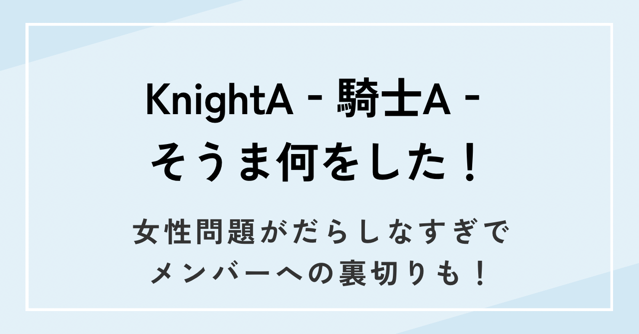 この記事では、KnightA‐騎士A‐のそうまさんが活動休止する理由となった数々の炎上騒動などについて、深掘りして紹介しています。