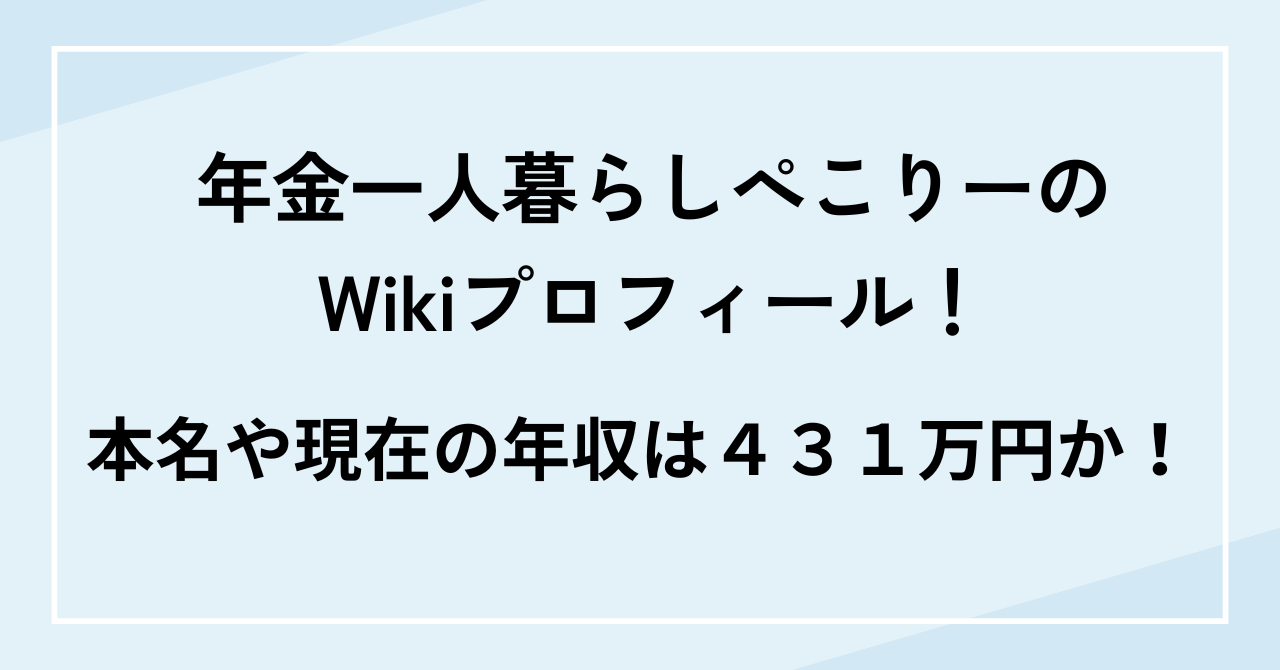 ”年金一人暮らしのぺこりーの”さんのプロフィールと年収について深掘りして調べてみました。